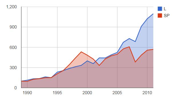 So the respective outperformance of L stock versus the S&P 500 index was: