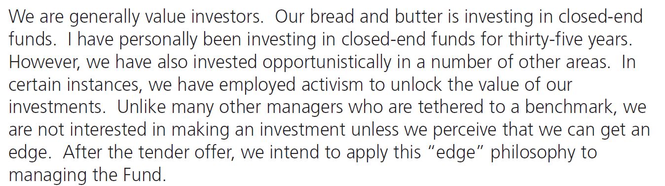 And the last paragraph of that letter was (after taking about the various types of investment funds including closed-end funds):