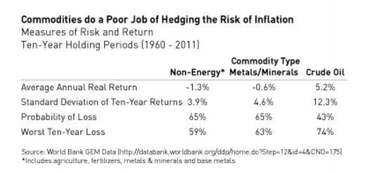 Also, Pzena points out that hard assets and commodities are popular now, but here is the true long term story of commodities: