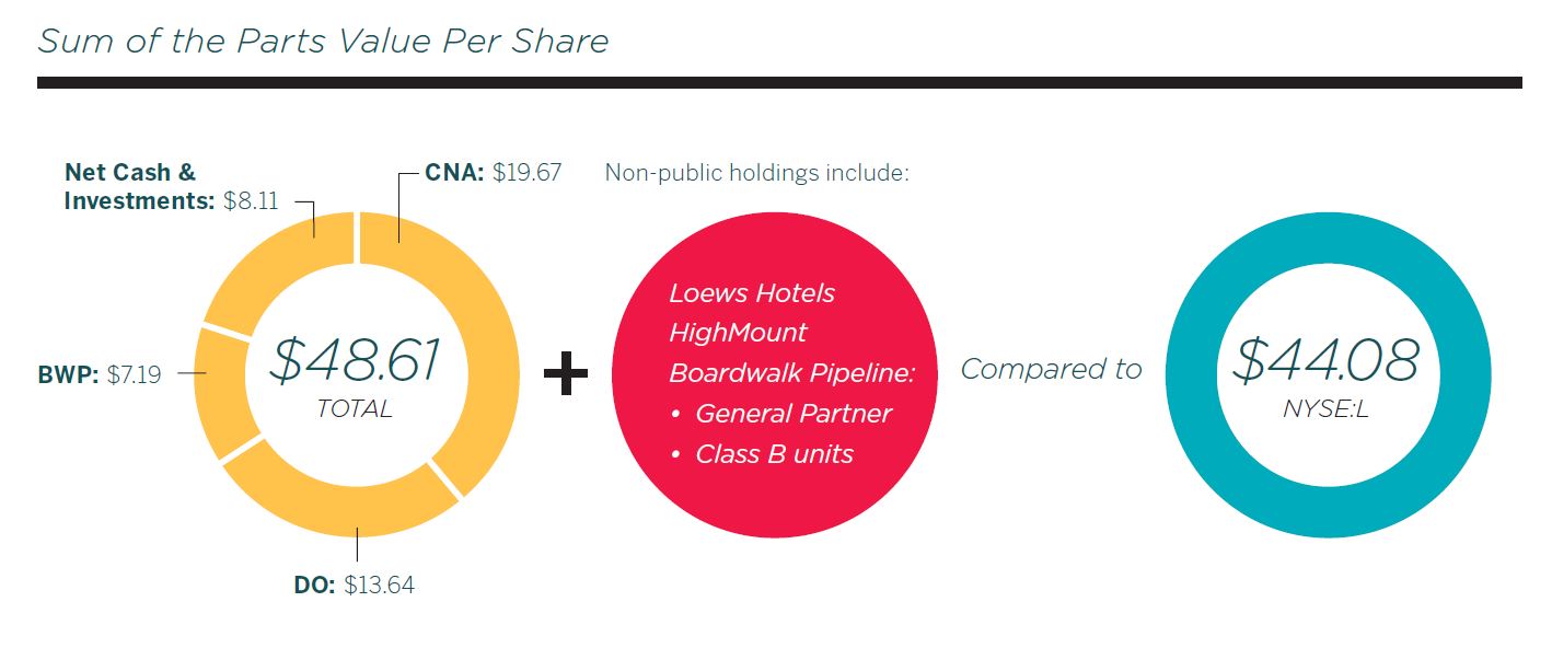 Flipping through the annual report and company overview, I get the sense that L is really on top of things and are working hard to create value. There does seem to be a lot of potential in their various areas of investment. If the CNA turnaround really works and they get their combined ratios down, premiums go up and rates keep firming, there can be some real upside in the stock as CNA is still trading cheap. Interest rates might have to go higher, though.