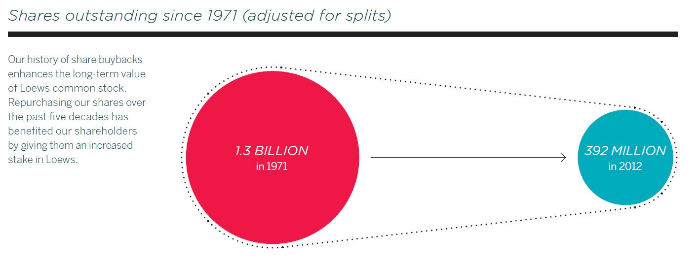 Tisch did say that although they haven’t done any large acquisitions, they have been investing actively at the subsidiary level. L has spent or committed $6.5 billion since 2010 through their subs.