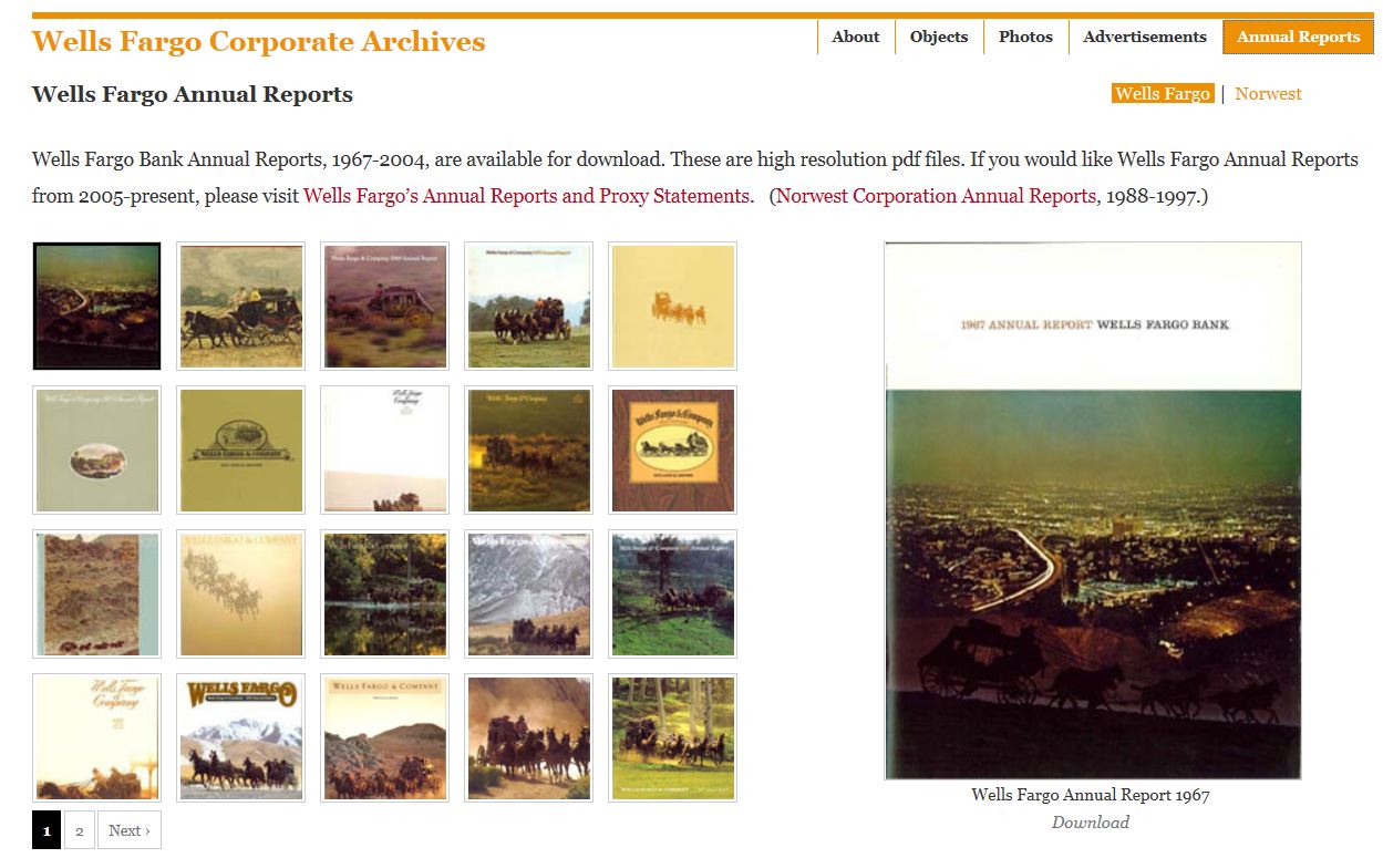 http://www.wellsfargohistory.com/archives/archives.html (click on annual reports, but not on the picture below because it’s just a picture)