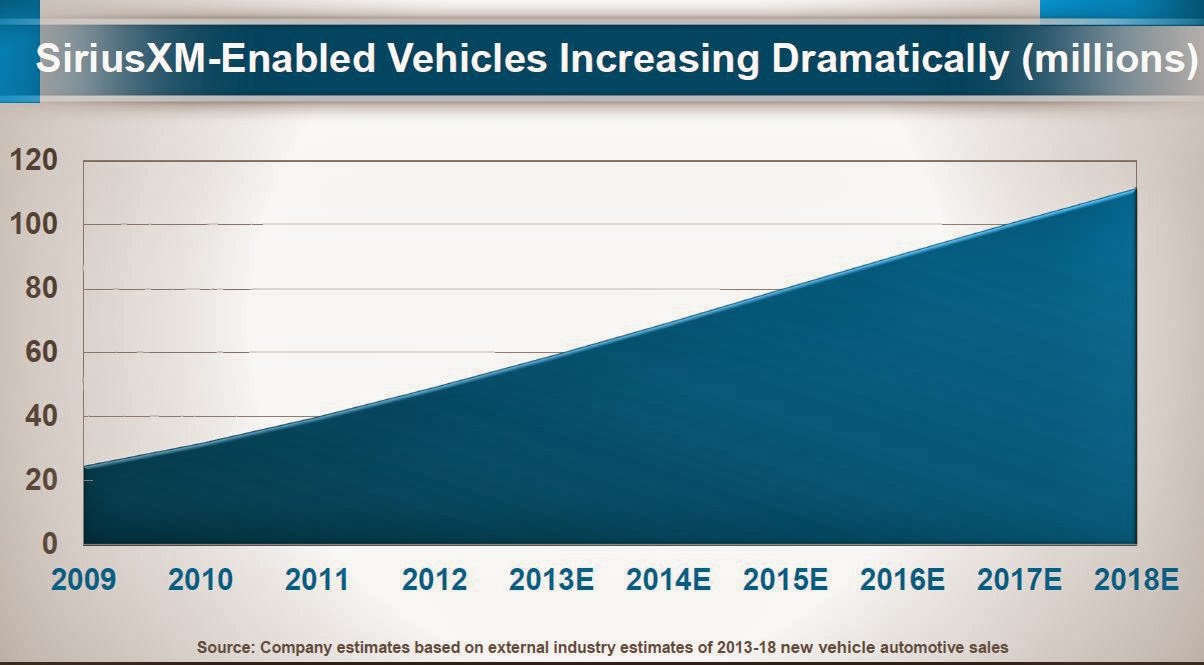 Growth is linked to new auto sales, obviously, and here’s the trend and forecast (auto industry forecast). SIRI has been increasing share in new auto sales.