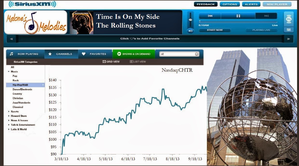 Non-New Yorkers might not recognize the buildings in this photo, but that’s the Time Warner Center in New York City. Maffei was talking about a fictional radio station on Sirius XM (called Malone’s Melodies). The tune playing is “Time Is On My Side”, so you know they really want to do this deal.