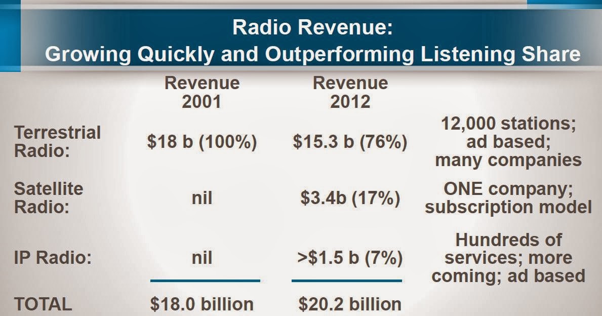 Also, with respect to competition from internet streaming services, Meyer points out that the big competitor out there is still terrestrial radio: