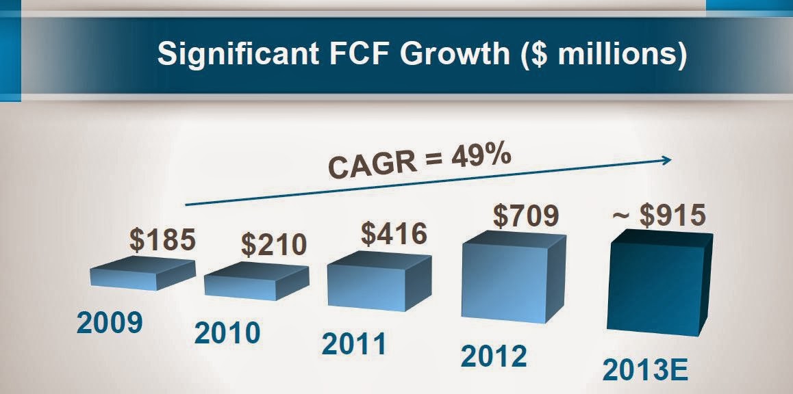 Oops, forgot the most important point about SIRI valuation. People look at EV/EBITDA and see something like 24x or whatever it was. And then look at Cablevision at 8x. Yes, SIRI looks cheap, but according to the slides (I should've pasted that in my original post), Free cash/EBITDA at SIRI is 77% versus 23% at Cablevision. So SIRI generates 3 times more free cash per EBITDA than Cablevision. So if you divide the 24x by 3, you get 8x (sort of a backward way of comparing EV/FCF).