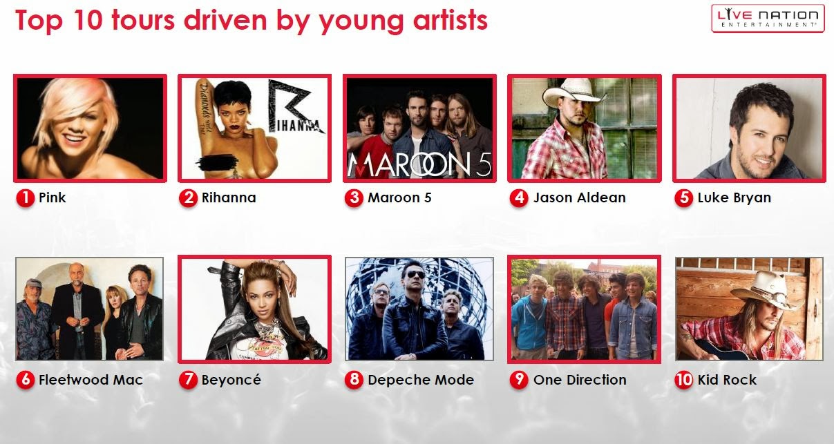 Frankly, Live Nation has never been on my radar. I always thought of the concert industry has one that makes money from the occasional Rolling Stones fairwell tours, Kiss reunion tours and things like that. I think for many years (not that I follow this stuff) the highest grossing concert tours tended to be these old, boomer-generation rock bands. So Michael Rapino’s presentation was an eye-opener for me.