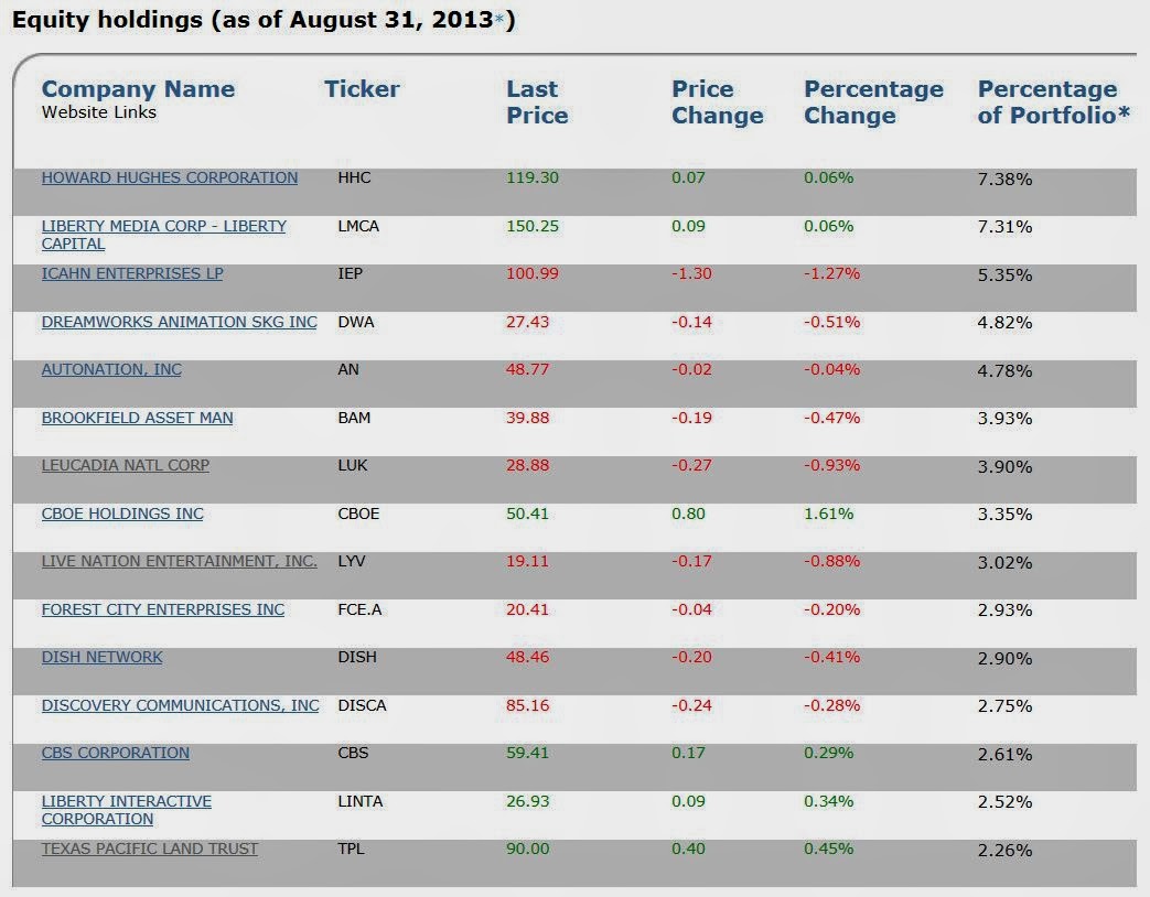 So look at that. Some of our favorite names are in there. Berkshire Hathaway, Colfax (subject of a recent post), Loews, Liberty Media, Greenlight, Google, Vornado, Sears etc…
