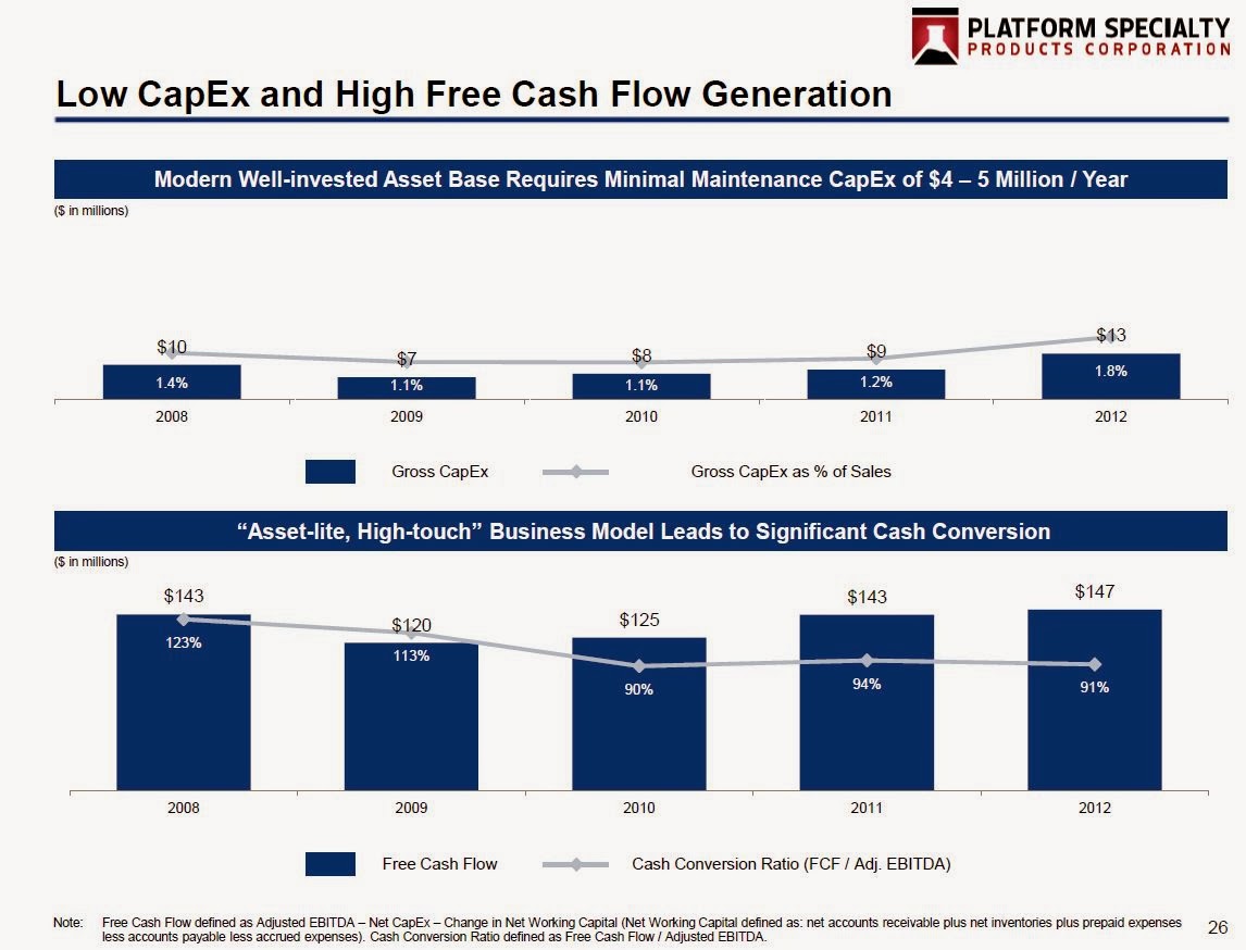 MacDermid was a publicly traded company until 2007 when there was a managment buyout. The MBO happened at $1.3 billion, or around 9x EV/EBITDA. The Platform acquisition happened at 10x adjusted EBITDA (at $1.8 billion). So the valuation looks more or less in line with what management thought it was worth back in 2007 (OK, 9 is not 10, but close enough for the blogoshpere!).
