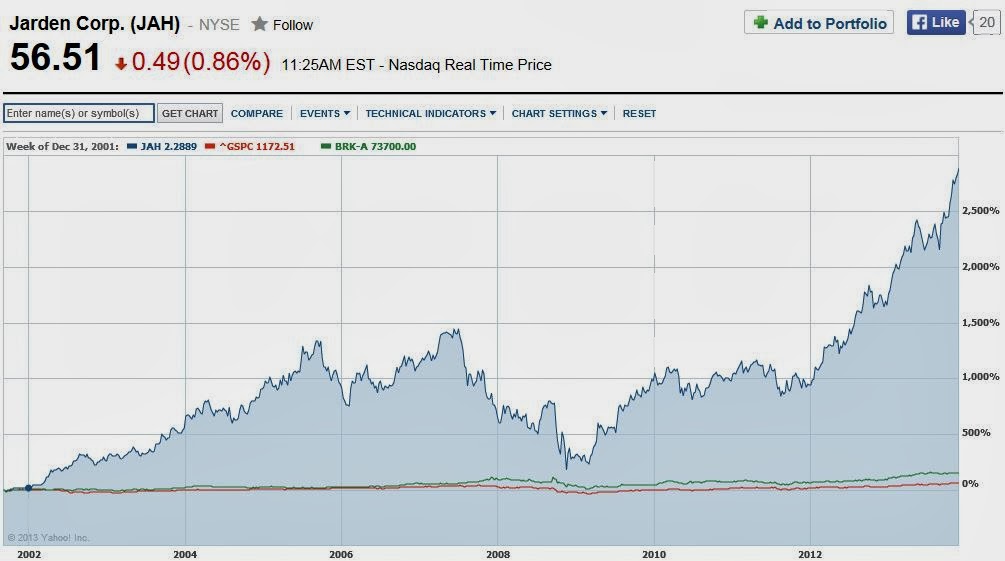 Martin Franklin took over JAH as Chairman and CEO in September 2001 and now is executive chairman (gave up CEO post in 2011).